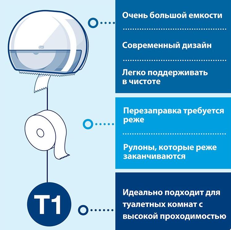 Туалетная бумага Торк Стандарт T1, однослойная белая, 525 метров в рулоне. Экономичные в использовании большие рулоны туалетной бумаги Торк из макулатуры, переработанного экологически чистого сырья, без перфорации. Подходят для использования в местах с высокой и максимально высокой проходимостью такие как гипермаркеты и супермаркеты, кинотеатры и театры, рестораны и кафе, городские поликлиники и больницы, медицинские центры и стоматологические клиники. Средний расход на одного посетителя - 1,15 метра.
