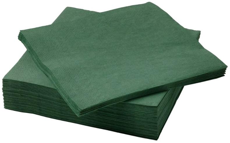 Салфетки бумажные 33х33 см, однослойные зеленые, предназначены для ежедневной сервировки стола, декорирования блюд. Бумажные салфетки могут быть использованы также в целях личной гигиены. Размер 33х33 см.