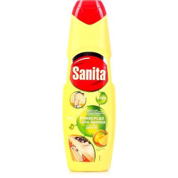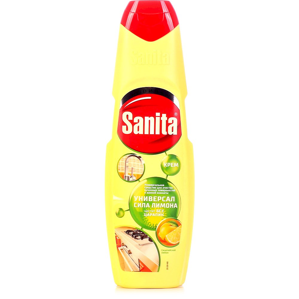 Санита Универсал Сицилийский лимон Чистящий крем, 600 грамм, предназначен для кухни и ванной, бережно очищает поверхности, легко смывается водой, не оставляет разводов после высыхания и дарит аромат свежести лимона. Содержит натуральные природные компоненты. Эффективно справляется с жиром, грязью, нагаром и известковым налетом. Рекомендовано для ежедневного использования.