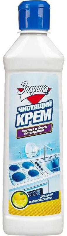 Золушка Чистящий крем 300 мл, для профессионального применения и использования в быту - предназначено для мытья и дезодорирования сантехники, облицовочной плитки, кухонных поверхностей и т.д. Благодаря мягкой консистенции не оставляет царапин и разводов на очищаемой поверхности. Поставляется в пластиковом флаконе 300 м.