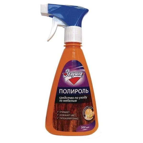 Полироль для мебели Золушка предназначена для ухода за мебелью - полированной и неполированной, а также для очистки и придания блеска деревянным, пластиковым, кожаным, металлическим, окрашенным и другим поверхностям. Средство удаляет жирные пятна, пыль и грязь, позволяет скрыть царапины и придает благородный и обновленный вид обработанным поверхностям. Обладает выраженным антистатическим эффектом, препятствует оседанию пыли и грязи. Новая формула средства обеспечивает дополнительную защиту