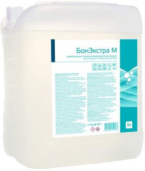 Дезинфицирующее средство БонЭкстра М концентрат, 5 литров, предназначено для дезинфекции, мытья и дезодорирования всех видов поверхностей, предметов интерьера, аппаратуры и оборудования, транспорта.