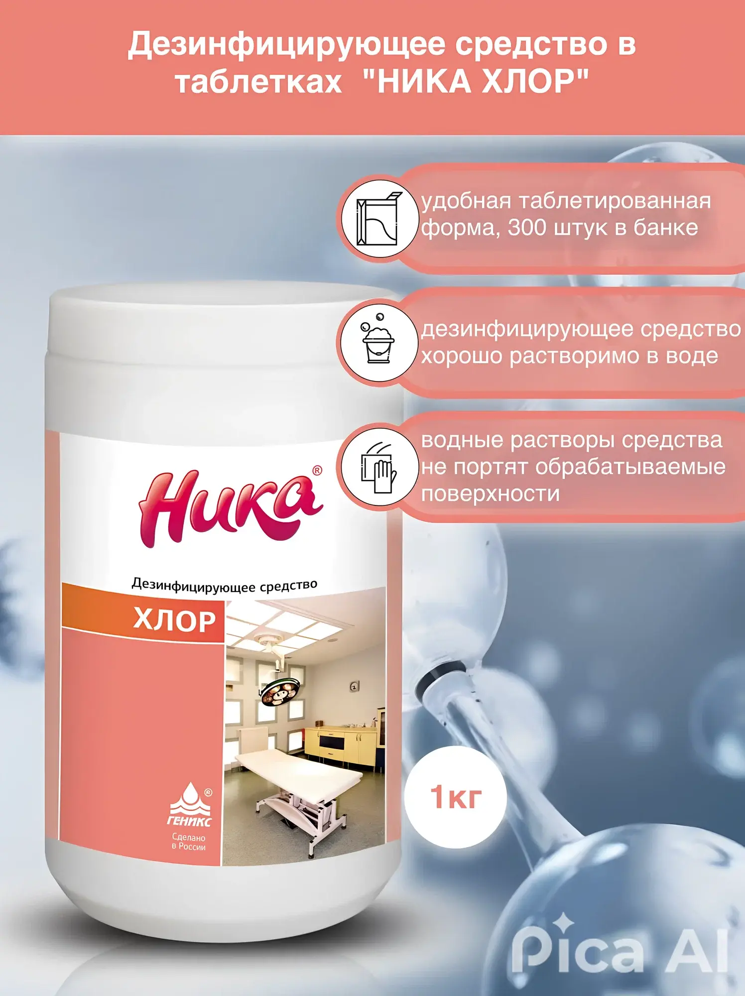 Натриевая соль дихлоризоциануровой кислоты (Nа-соль ДХИЦК) в количестве 84% активный хлор в таблетках и гранулах 45,5 %