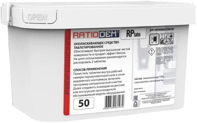 Таблетированное ополаскивающее средство для ополаскивания рабочей камеры пароконвектомата.