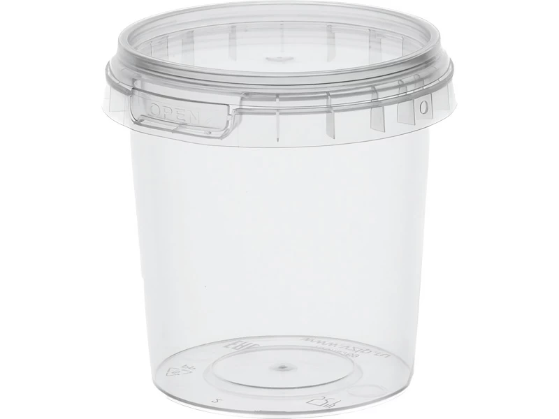 Банка из прозрачного полипропилена. Оснащена контрольным замком. Объем 155 мл, диаметр верхнего края 69 мм. К банке подходит крышка арт. 17-0515. В упаковке 900 штук.