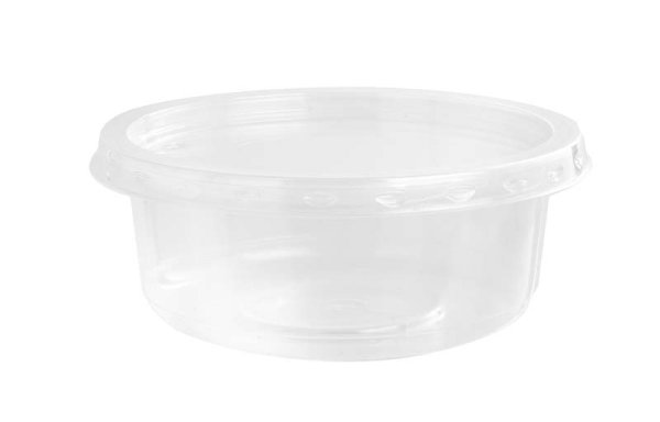 Контейнер изготовлен из полипропилена, который безопасен для горячих продуктов и повторного разогрева в СВЧ. Объем 250 мл, диаметр верхнего края 115 мм. Прозрачного цвета. К контейнеру подходит крышка арт. 17-4545. В упаковке 50 штук.