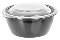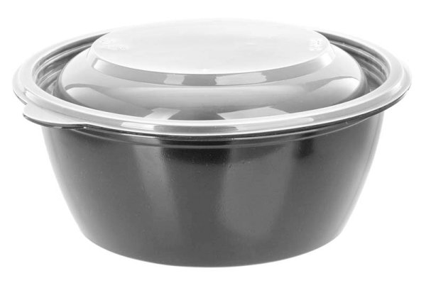 Контейнер круглый изготовлен из полипропилена черного цвета. Прочный, пластичный, термоустойчивый, может использоваться для разогрева продуктов в микроволновой печи. Поставляется без крышки. Диаметр 144 мм. Объем 375 мл. В упаковке 300 штук.