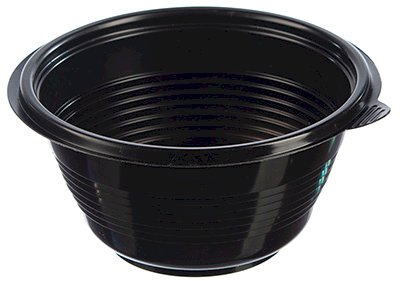 Контейнер изготовлен из полипропилена, который безопасен для повторного разогрева в СВЧ. Объем 500 мл, диаметр верхнего края 144 мм, высота 70 мм. Черного цвета. К контейнеру подходит крышка арт. 17-6241. В упаковке 540 штук.