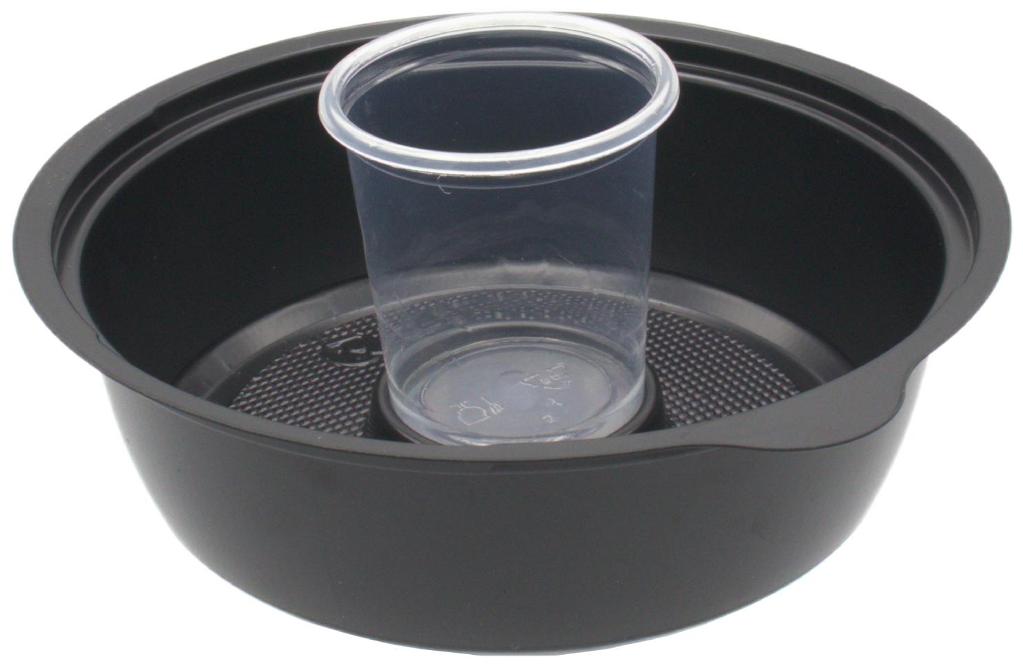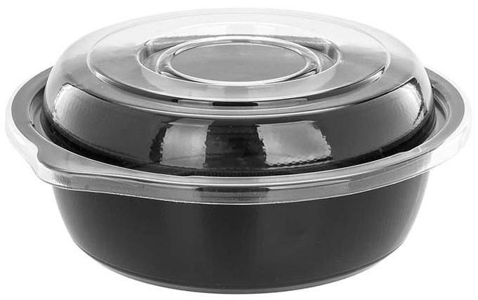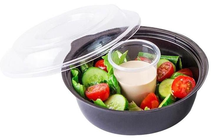Контейнер круглый КД-110 450 мл черный, диаметр 160 мм с соусником 80 мл, изготовлен из черного полистирола. Контейнер комплектуется специальным прозрачным стаканчиком под соус (80 мл) и прекрасно подходит для любых салатов и холодных закусок. Объем 450 мл, диаметр 160 мм, высота 65 мм. Поставляется без крышки, артикул крышки для контейнера 17-0602.