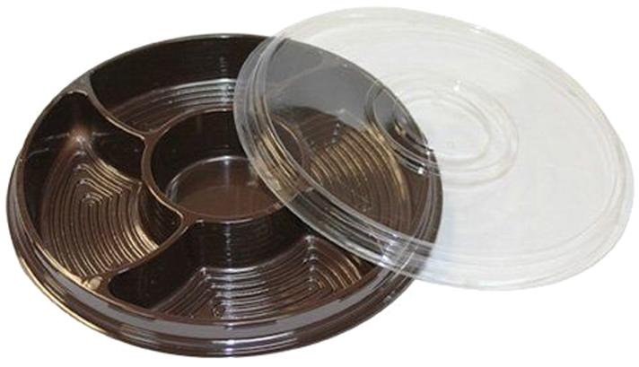 Крышка к контейнеру-менажнице 5 секций диаметр 260 мм, ТР-260К ПЭТ, изготовлена из прозрачного материала ПЭТ, обеспечивает надежную защиту и фиксацию содержимого внутри контейнера. Прозрачный материал позволяет продемонстрировать продукцию, а также защищает ее от внешних воздействий.