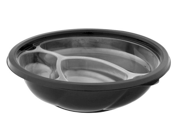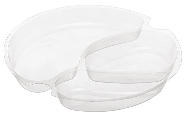 Контейнер-вставка для контейнера СпК-190. 3-х секционная менажница позволяет наполнить контейнер различными ингредиентами, не смешивая их. Диаметр 171,7 мм, высота 20,2 мм. Изготовлена из прозрачного ПЭТ. В упаковке 300 штук.