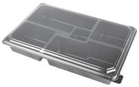 Крышка к контейнеру бенто-бокс 296х194х100 мм PS, изготовлена из пищевого пластика полистирола. Плотно и крепко облегает пищевой контейнер, что снижает вероятность контакта продуктов с внешней средой.
