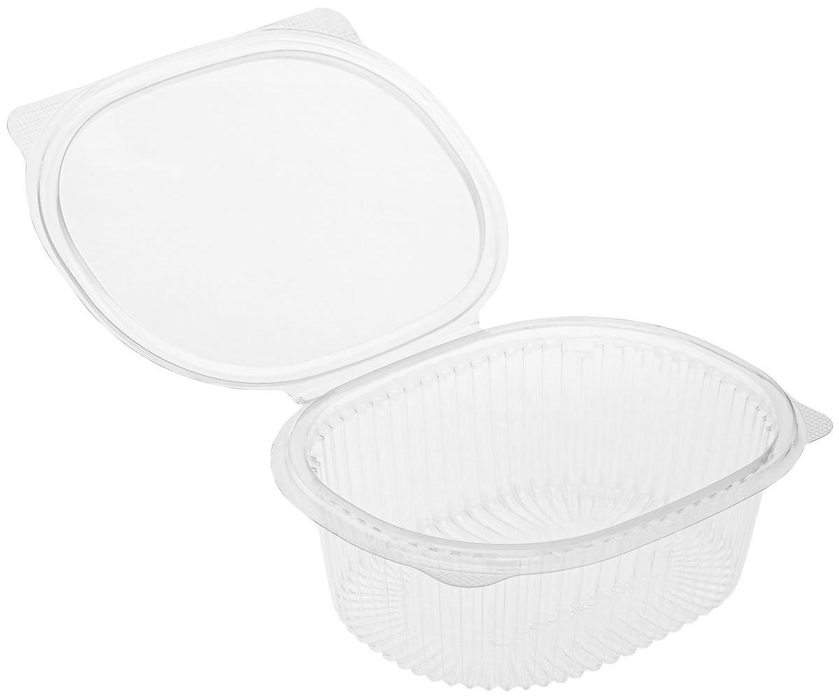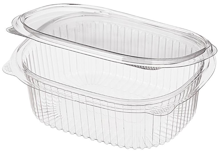 Контейнер с неразъемной крышкой 500 мл 159х130х55 мм РКС-500/1 ОП (Т) овальный, изготовлен из полистирола, прозрачного цвета, овальной формы. Предназначен для фасовки салатов, десертов, кондитерских изделий, овощей, холодных закусок. Размер контейнера 159х130х55 мм.