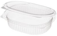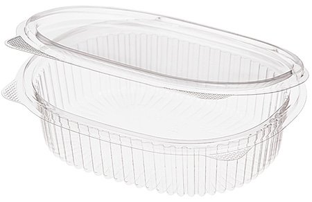 Контейнер с неразъемной крышкой овальной формы изготовлен из прозрачного полистирола. Размер 159х130х41 мм. Объем 350 мл. В упаковке 375 штук.