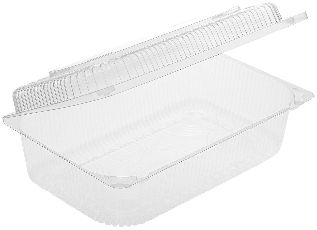 Контейнер с неразъемной крышкой (РК-21) 1550 мл ФП-К21М/Т, 212х137х67 мм, изготовлен из прозрачного полистирола. Оснащен замками для предотвращения преждевременного открытия крышки. Предназначен для фасовки, хранения и транспортировки кондитерских изделий, десертов, холодных закусок, сухофруктов и т.п. Размер 212х137х67 мм.