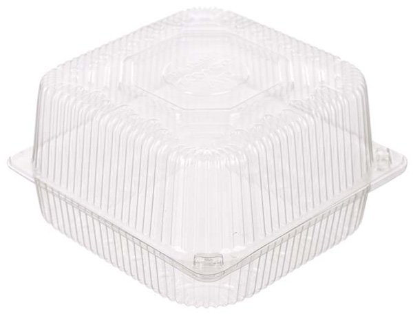 Контейнер с неразъемной крышкой изготовлен из прозрачного полистирола. Размер 150х150х80 мм. Объем 1250 мл. В упаковке 660 штук.