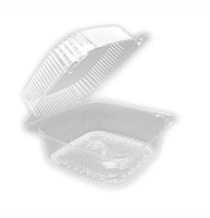 Контейнер с неразъемной крышкой объемом 1550 мл изготовлен из полистирола прозрачного цвета. Размер контейнера 132х32х79 мм. В упаковке 500 штук.