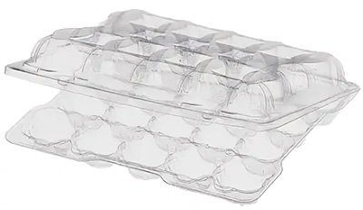 Контейнер для яиц изготовлен из прозрачного ПЭТ. Контейнер легкий, жёсткий, прозрачный, устойчив к воздействию влаги. Имеет откидную крышку. Состоит из 20 ячеек, в каждой из которых помещается одно перепелиное яйцо. Благодаря пластиковым перегородкам, продукция не разбивается во время перевозки и хранения. Размер контейнера 215х120х40 мм. В коробке 400 штук.