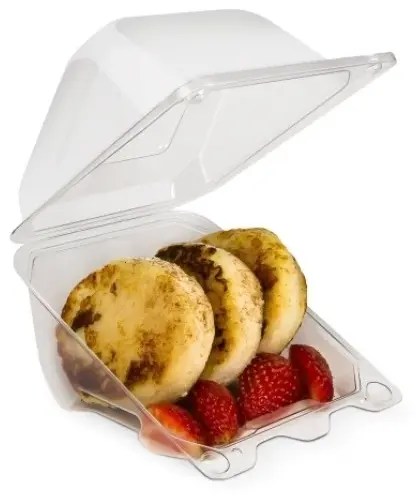 Контейнер с неразъемной крышкой КД-116 под десерты 122х110,5х67 мм, PS прозрачный, удобный контейнер для десертов, тортов, пирожных, а также для роллов и других холодных закусок. Высокая прозрачность упаковки позволяет красиво представить товар, а надёжные замки облегчают транспортировку изделий.