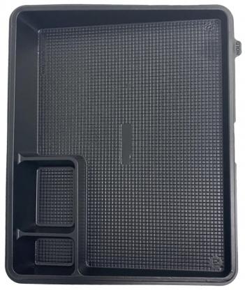 Контейнер дно под суши ПК-0038С, 316х252х49 мм 3 секции черное ПС, предназначен для фасовки суши и роллов, на предприятиях общественного питания и торговли, а также в домашних условиях. Изготовлен из черного полистирола.