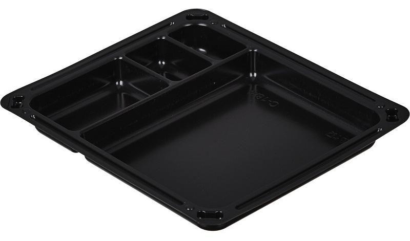 Контейнер дно под суши С-18/4 184*162*19 мм 4 секции черный, предназначен для фасовки суши, роллов, восточных сладостей, готовой кулинарии как в сфере общественного питания так и в бытовых условиях. Используется в комплекте с крышкой 17-3067 (С-18К).
