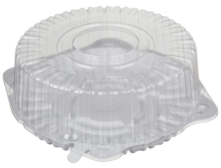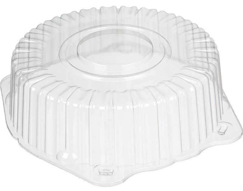 Крышка для контейнера Т-225КН (М) диаметр 227 мм, высота 89 мм прозрачная, низкая предназначена для фасовки тортов и используется в комплекте с дном Т-225ДШ(М). Предусмотрены вентиляционные отверстия. Внутренний размер комплекта 228х90мм.