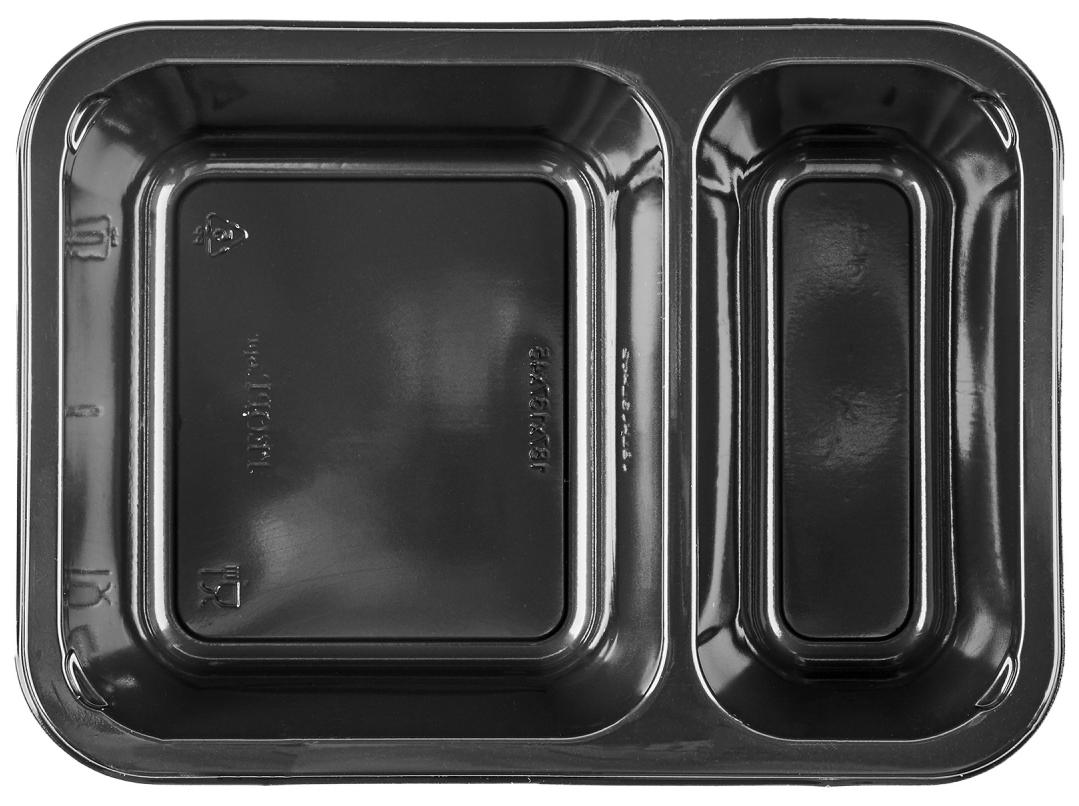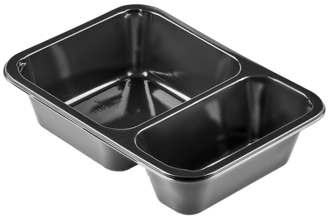 Контейнер под запайку 650 мл 187х137х46 мм 2-х секционный 30/70 черный, без ребер полипропилен, идеально подходят для упаковки готовых первых и вторых блюд, салатов, десертов. Гладкая внутренняя поверхность обеспечивает использование продукта без остатка. Материал - полипропилен. Общий объём - 650 мл, секции 30/70.Объемы секций 215/435 мл. Размеры: 187х137 мм, высота 46 мм. Температурный режим использования лотков от -40 до +120оС; при запайке лотка и плёнки - от +120 до +200оС. Можно использовать в МГС, СВЧ, на автоматических линиях. Подходят для запайки запаечной плёнкой.