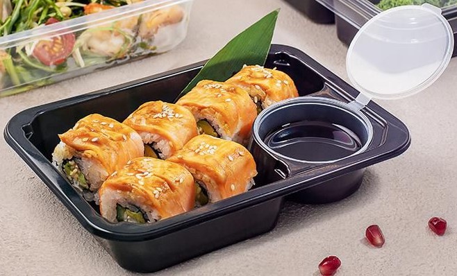 Контейнер под запайку 695 мл 187х137х45 мм соусник 75 мл в углу черный К-187С ПП, используется для фасовки мясных и рыбных полуфабрикатов, деликатесов, идеально подходят для упаковки готовых первых и вторых блюд, салатов, десертов. Абсолютная герметичность. Сохранение свежести и увеличение сроков хранения. Можно разогревать в СВЧ-печи. Температурный режим использования контейнера от -40 до +120оС; при запайке контейнера и плёнки - от +120 до +200оС. Изготовлен из полипропилена черного цвета. Предназначен для фабрик кухни, ритейла, кафе и ресторанов. Полный объем:695 мл, 1 секция: 620 мл, 2 секция для соусника: 75 мл. Размер 187х137х45 мм.