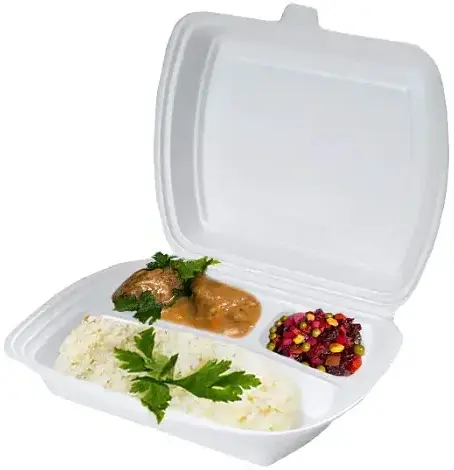 Ланч-бокс ВПС 3-секции, 247х206х(35+30) мм белый, изготовлен из вспененного полистирола белого цвета. Благодаря пористой структуре материал хорошо пропускает воздух, защищает от механических повреждений, продукты сохраняют свежесть и товарный вид. Легкий, термоустойчивый, не пропускает запахи, удобный в транспортировке, экологичный. Подходит для продуктов питания различного вида. Благодаря пористой структуре и утолщённым стенкам, в среднем ланч-бокс сохраняет температуру около 2–3 часов. Выдерживают температурный режим от -35 до +70 градусов Цельсия. Отлично подойдёт для упаковки и доставки бизнес-ланчей и нескольких блюд в одной упаковке. Размер 247х206х(35+30) мм.