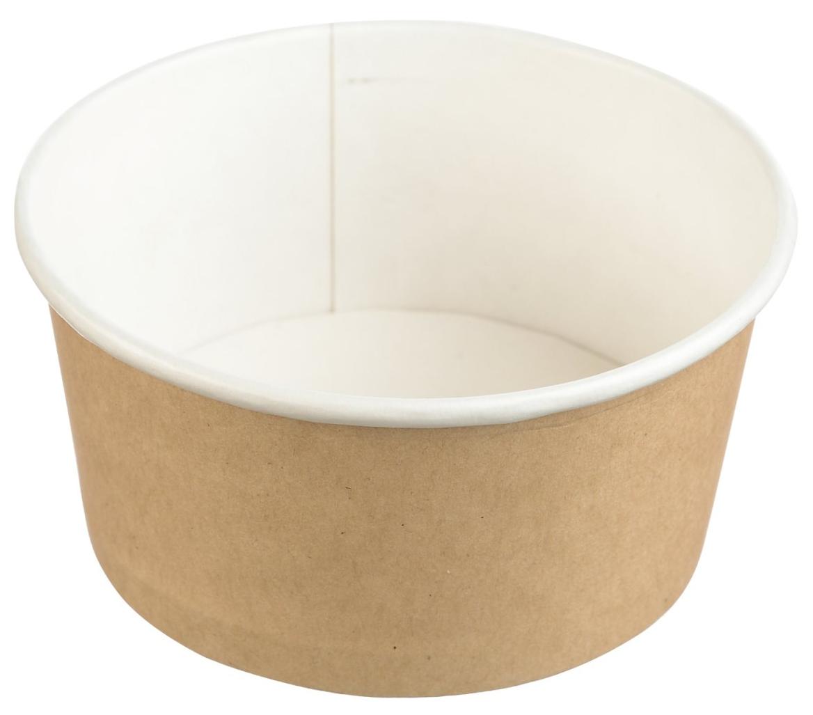 Контейнер бумажный 330 мл, диаметр 114 мм, крафт, подходит для горячих и холодных блюд. Можно использовать для супов, каш, мороженого и других блюд и десертов. Пригоден для разогревания в микроволновой печи, материал не выделяет вредные вещества при нагревании. Изготовлен из плотной бумаги крафтового цвета с ламинированным внутренним покрытием. Объем 330 мл. Диаметр 114 мм. Высота 55 мм. Подходит крышка арт. 19-0695.