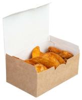 Коробка на вынос 115х75х45 мм, крафт, изготовлена из крафтового картона. Можно использовать для разогрева еды в микроволновой печи. Устойчива к воздействию масел и жиров, дополнительно обеспечивая высокую сохранность продукта. Самосборная, поставляется в плоском виде. Размер 115х75х45 мм.