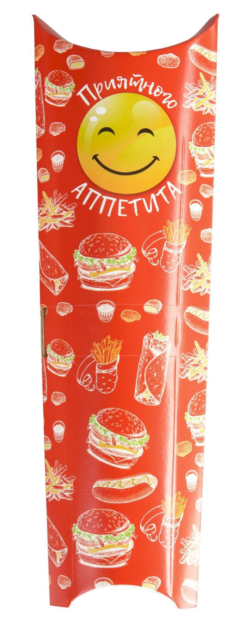 Коробка под ролл "Smile", 220х63х40 мм, с рисунком, подходит для разогрева в микроволновой печи, удерживает жир и влагу, полностью ламинирована изнутри. Подходит для доставки готовых блюд, для заведений торгующих едой на вынос. Размер 220х63х40 мм.
