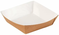 Лоток для фастфуда 138х138х42 мм, крафт, изготовлен из крафтового картона, удерживает жир и влагу. Не требует сборки за счет объемной склейки. Прекрасно заменяет тарелки. Подходит для подачи готовых блюд на вынос, порций картофеля фри, наггетсов, крыльев, снеков и т.д. Внутренняя поверхность белая с ламинацией. Размер 138х138х42 мм. Объем 500 мл.