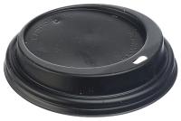 Крышка для стакана БЕЗ НОСИКА Черная диаметр 90 мм, изготовлена из полистирола черного цвета. Диаметр 90 мм. Имеет отверстие для комфортного употребления напитка во время ходьбы или управления транспортным средством. Прочно удерживается на стакане, препятствует непроизвольному разливу напитка.