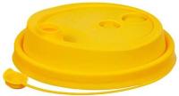 Крышка с клапаном для стакана диаметр 90 мм, полипропилен, желтая матовая, используется совместно с одноразовыми бумажными стаканами с верхним диаметром 90 мм. Надежно крепится к стакану, увеличивая его жесткость, плотно прилегает к краям, способствует удержанию напитка во время хранения, предохраняет от попадания пыли и грязи. Имеет отверстие для удобного употребления напитка во время ходьбы или за рулем автомобиля. Наличие клапана предоставляет возможность закрывать отверстие в крышке во время перерыва употребления во избежание непроизвольного проливания напитка. Оснащена углублением для крепления клапана во время использования и пробивным слотом для трубочки или размешивателя. Цвет желтый матовый.