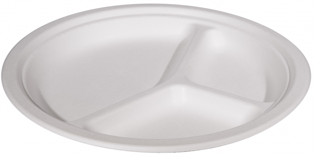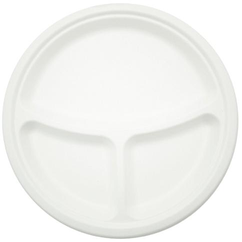 Тарелка БИОразлагаемая, 3-секции, диаметр 260 мм, целлюлоза, белая, изготовлена из первично обработанной целлюлозы. Подходит для горячих и холодных блюд. Устойчива к влаге, жиру, механическим воздействиям и перепадам температур. Прочная, не деформируется. Может использоваться для разогрева пищевых продуктов в микроволновой печи и замораживания в холодильнике. Экологичная, не выделяет токсинов, подлежит вторичной обработке. Предназначена для использования в заведениях общественного питания, на выездных и туристических мероприятиях. Имеет три секции - для основного блюда, салата, гарнира к нему. Диаметр 260 мм.