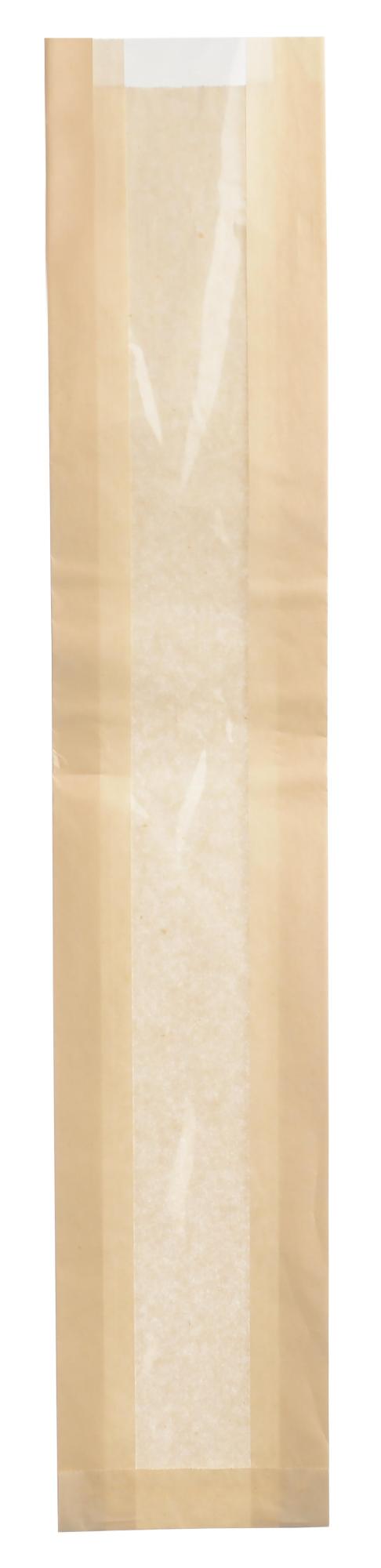 Пакет бумажный 110х40х600 ВПМ-40г/м2 бежевый с окном. Этот пакет изготовлен из качественной влагостойкой бумаги ВПМ. Благодаря своей конструкции с окном и плоским дном, этот пакет идеально подходит для упаковки различных товаров, таких как хлебобулочные изделия, кондитерские изделия, мелкие предметы и многое другое. Окно в пакете позволяет покупателям видеть товар, что делает его привлекательным для визуальной демонстрации продуктов.