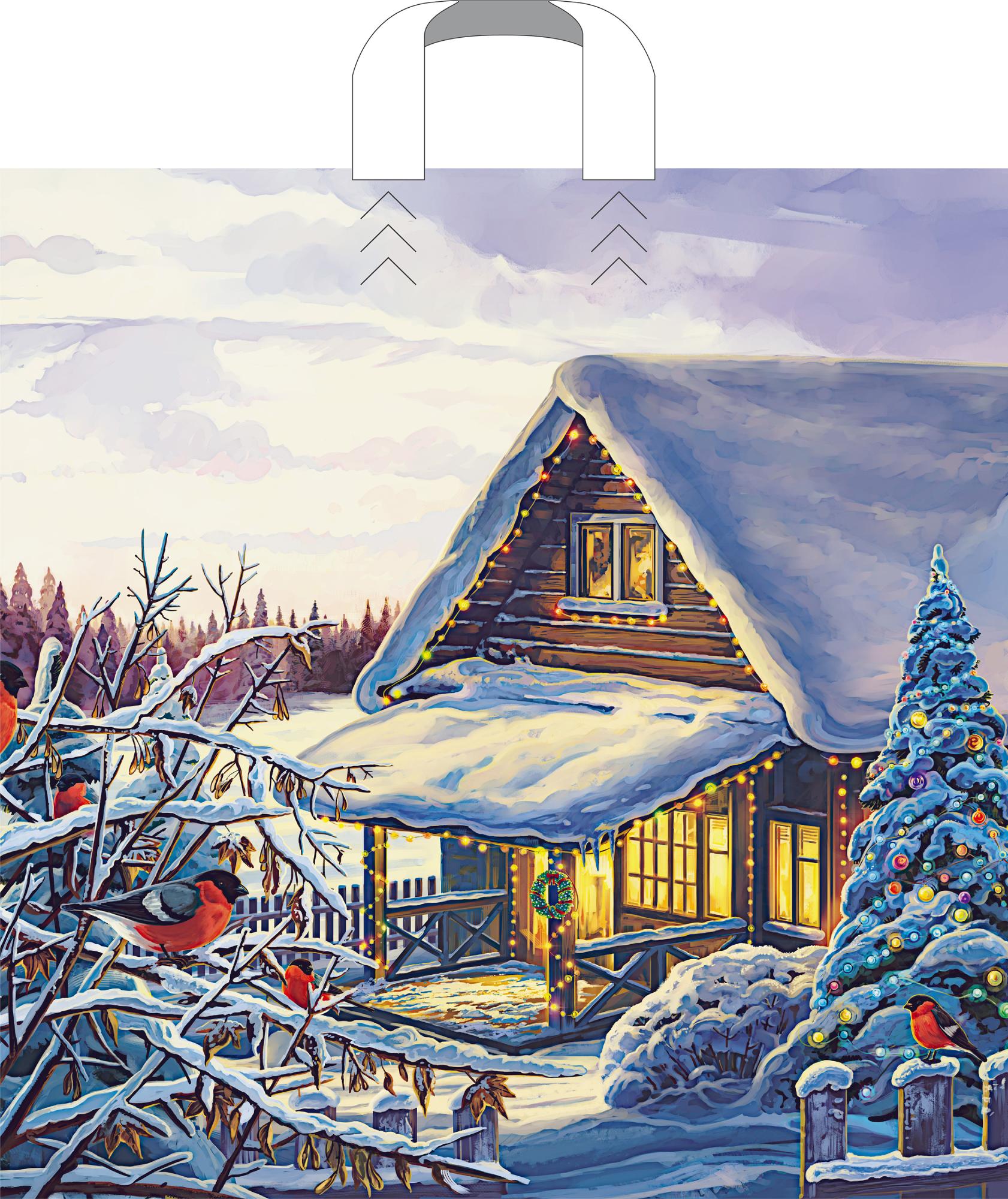Пакет ПЭ с петлевой ручкой 45х45см (60) (Домик в лесу)
