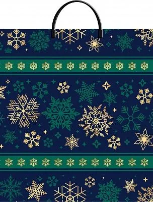 Пакет ПЭ с пластмассовыми ручками 40х44см (100) (Изумрудные снежинки)