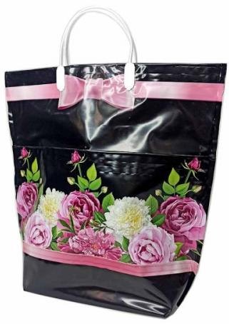 Пакет ПЭ с пластмассовыми ручками 37х37см (Цветы с карманами)