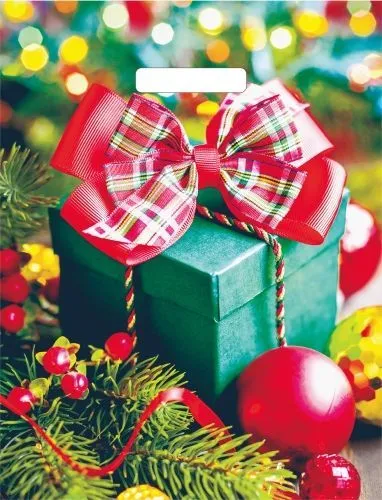 Пакет ПЭ с вырубной ручкой 31х40см (60) (Зеленый подарок) НГ, глянцевый