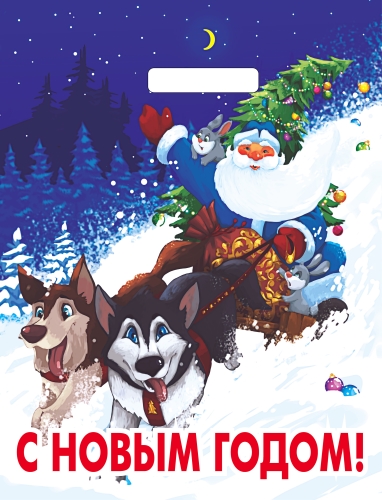Пакет ПЭ с вырубной ручкой 31х40см (60) (Веселая упряжка) НГ, глянцевый