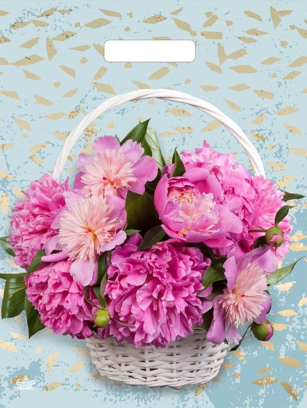 Пакет ПЭ с вырубной ручкой 31х40см (60) (Корзина пионов)