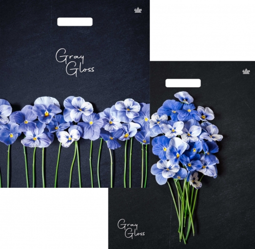 Пакет ПЭ с вырубной ручкой 39х48см (50) (Грэй Глосс Анютины глазки) ламинированный