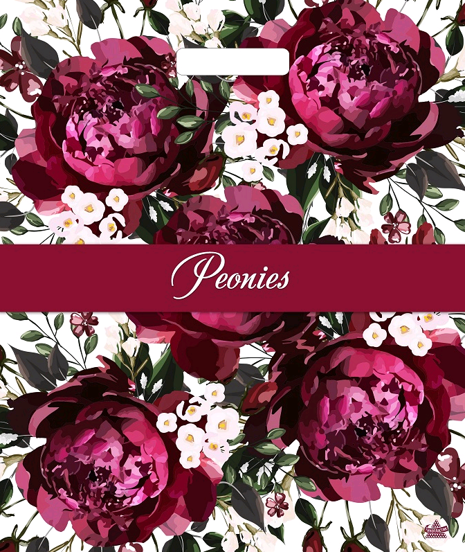 Пакет ПЭ с вырубной ручкой 38х45см (60) (Бордовые пионы)