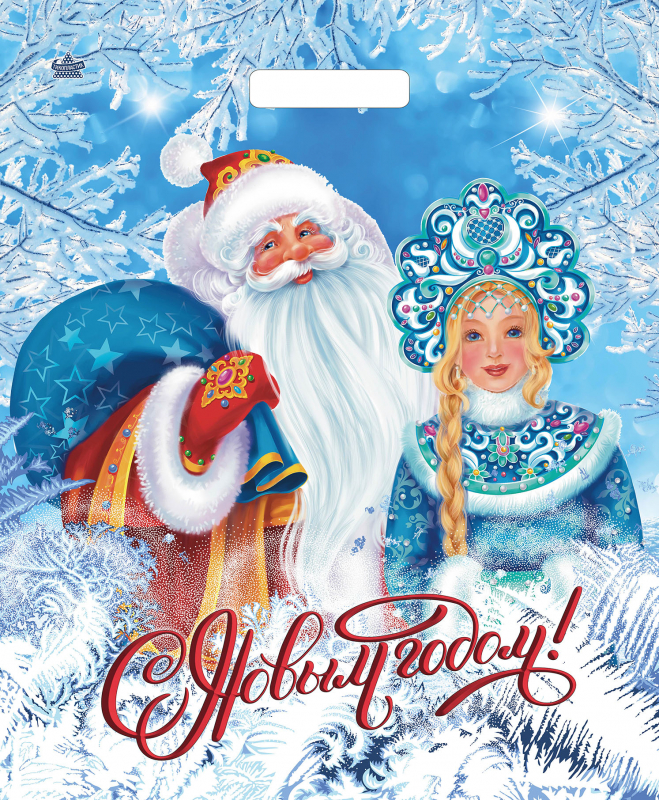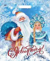Пакет ПЭ с вырубной ручкой 38х45см (60) (Дед мороз и снегурочка) глянцевый