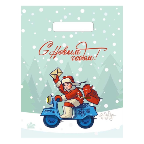 Пакет ПЭ с вырубной неусиленной ручкой 23х30см (30) (Новогоднее послание)