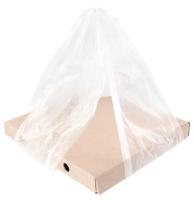 Пакет-майка под коробку для пиццы размером от 30х30см до 38х38см, белого цвета. Изготовлен из полиэтилена низкого давления. Оснащен специальными прорезями, позволяющими разместить квадратную коробку горизонтально, без опасения, что горячая пицца сможет перевернуться. Шуршит и имеет глянцевую поверхность. Размеры: 32х60 см, ширина бокового фальца 24 см, плотность 14 мкм.