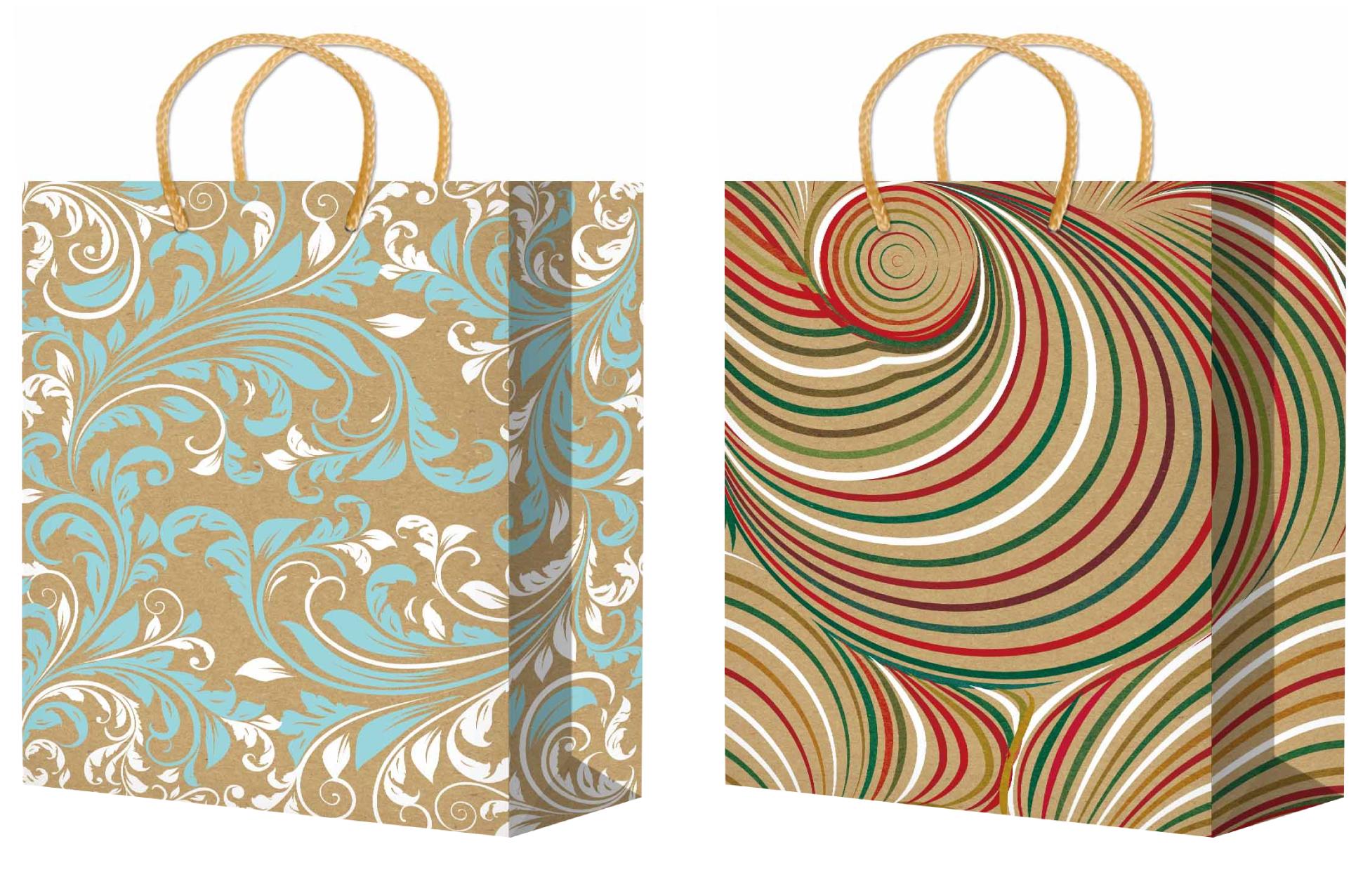 Пакет подарочный 32х45+10см цвет Крафт/Белый (XLK017-018 Микс)