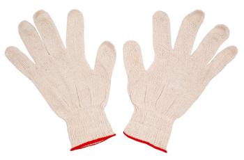 Перчатки хлопчатобумажные без напыления, 4 нити, 7 класс, предназначены для выполнения строительных и сельскохозяйственных работ, а также для точных ручных механосборочных работ. Перчатки кругловязаные, с эластичными манжетами, которые мягко прилегают к кисти и предотвращают попадание бытового мусора внутрь перчаток. Обеспечивают свободный воздухообмен благодаря натуральной хлопчатобумажной основе. Простые, белого цвета, 4-х нитка, 7 класс.